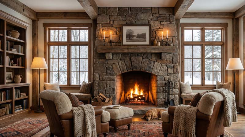Камин в загородном доме — это не просто источник тепла. Это главная точка притяжения всего интерьера, живой очаг, вокруг которого собирается семья долгими зимними вечерами. Правильно подобранный облицовочный материал не только создаёт красивый внешний вид, но и защищает конструкции от перепадов температур, механических повреждений и воздействия огня, а также позволяет помещению дольше удерживать тепло после угасания дров.