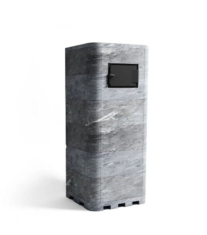 Печь банная газовая Klover RT 35-RV 310S в полной облицовке из натурального камня талькомагнезит — это усиленная модель, рассчитанная на коммерческое применение. Топка изготовлена из нержавеющей стали марки AISI 310S толщиной 5 мм, что обеспечивает долговечность и устойчивость к высоким температурам. Печь предназначена для парных объёмом от 22 до 35 м³ и работает в режиме «Русская баня».
