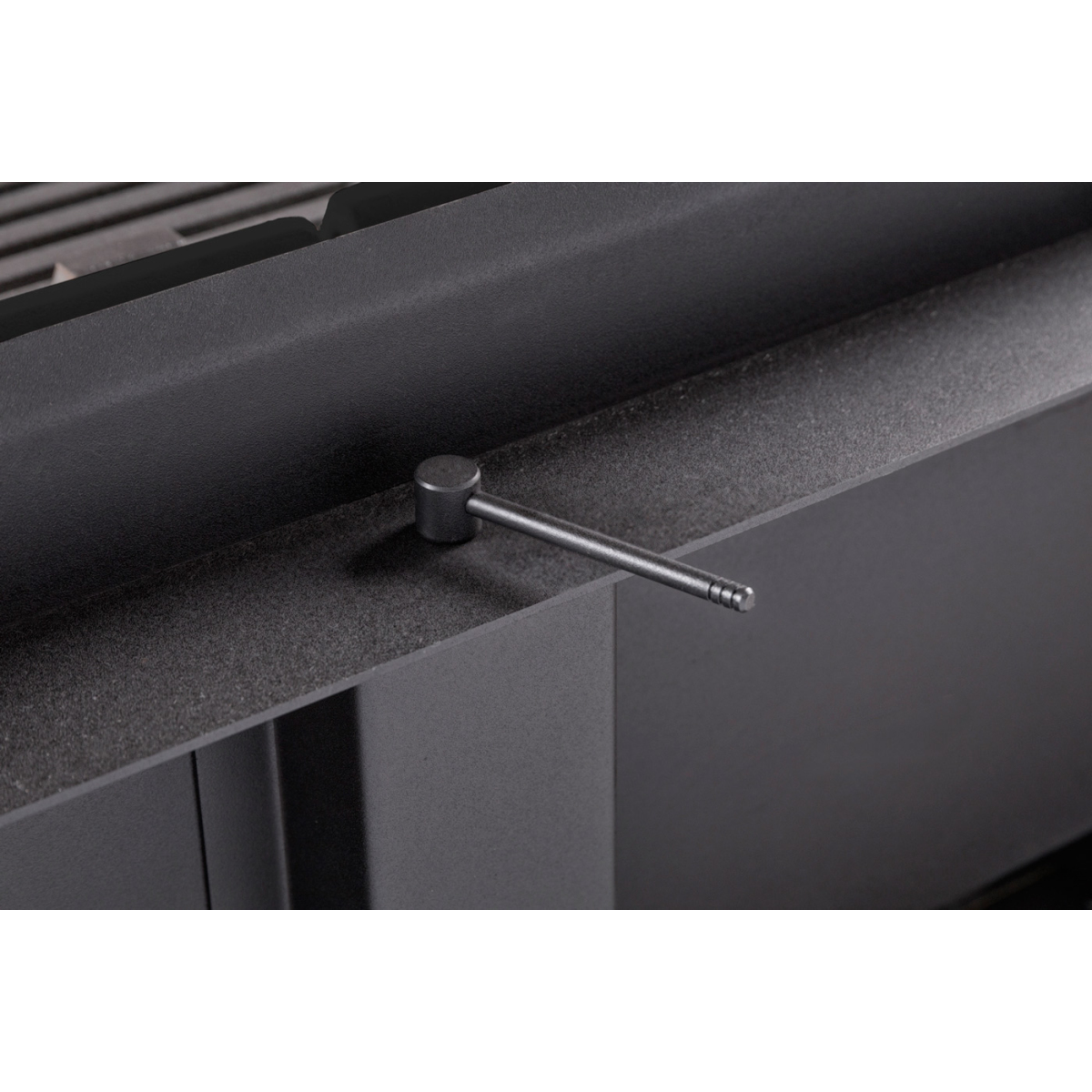 Каминная топка EcoKamin Дельта 800B — это современное и эффективное решение для отопления жилых помещений площадью до 160 м². Модель оснащена панорамным трехсторонним остеклением с декоративным принтингом по периметру, что создает эффект живого огня и становится стильным элементом интерьера. Внутренняя камера облицована черным литьевым шамотом, обеспечивающим высокую теплоемкость и долговечность.