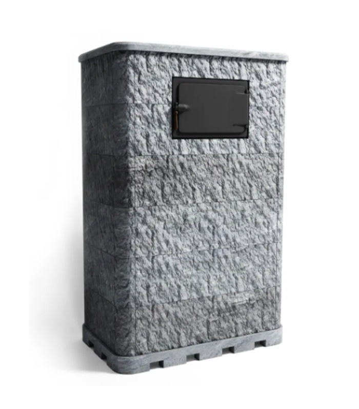 Дровяная печь для бани Klover RT 100-RV 310S — это мощное и надежное оборудование для создания идеального пара в просторных парных объемом от 50 до 100 кубических метров. Печь выполнена в стильной и долговечной облицовке из натурального талькомагнезита серии «Скала» толщиной 50 мм, что обеспечивает не только эстетичный внешний вид, но и эффективное аккумулирование тепла.