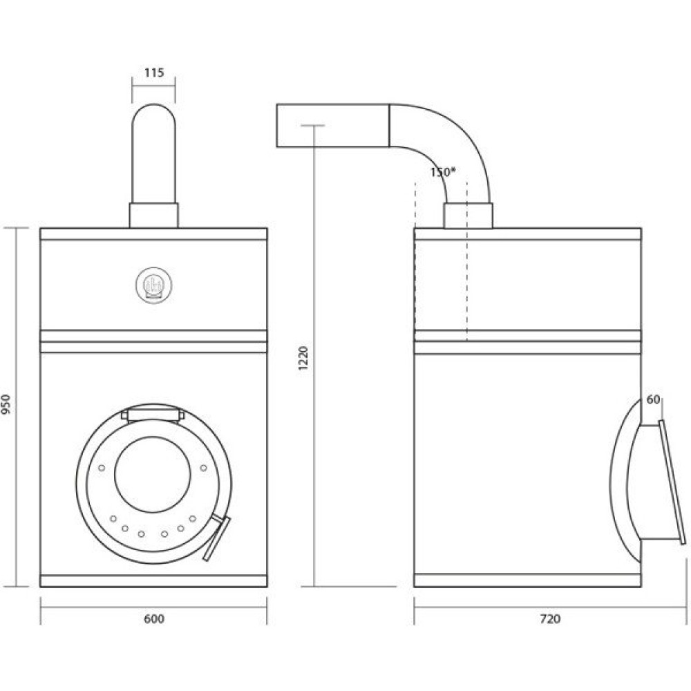 950ммДиаметр дымохода (мм)