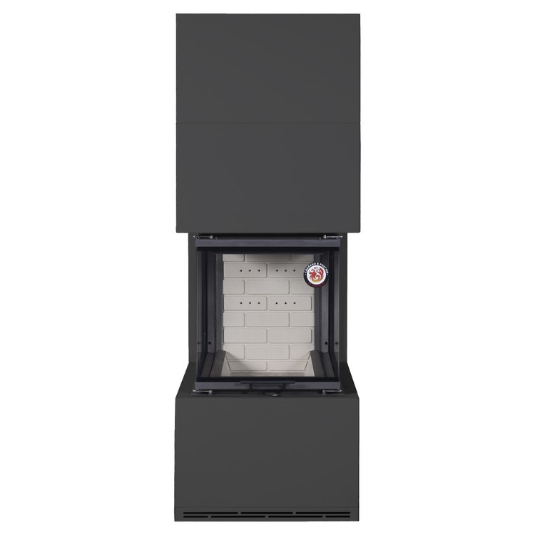 Камин Родос 900 от EcoKamin — это готовый к установке пристенный дровяной камин современного дизайна. Модель отличается высокой тепловой мощностью 13 кВт и эффективностью до 80%, что позволяет обогревать помещения объемом до 375 куб. м. Цельносварной стальной корпус в черном цвете сочетается с белой шамотной футеровкой топки, создавая элегантный контраст.