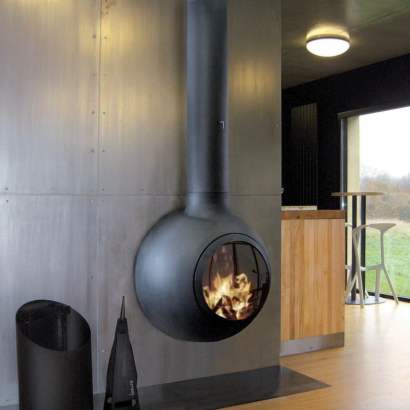 Камин Focus Emifocus Porthole — это современный пристенный дровяной камин с уникальной выпуклой стеклянной дверцей, создающий эффект панорамного обзора живого пламени. Модель выполнена в стиле хай-тек из высококачественной стали и предназначена для верхнего подключения дымохода с выходом трубы в потолок.