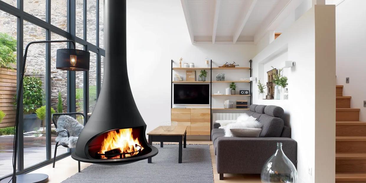 Данная модель идеально подойдет для современных интерьеров, где камин становится не только источником тепла, но и центральным элементом дизайна. Благодаря подвесной конструкции и отсутствию остекления, камин создает эффект парящего в воздухе очага.