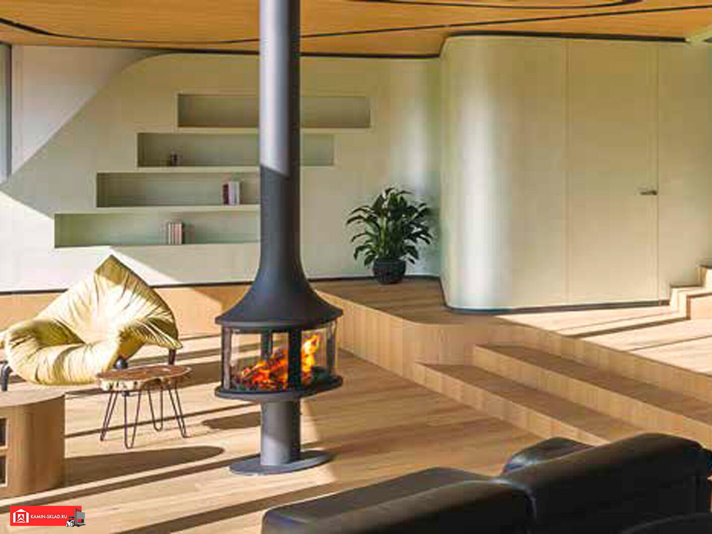 Этот камин идеально подойдет для современных интерьеров, где важны как функциональность, так и дизайн. Он станет центральным элементом гостиной или просторного холла, создавая уютную атмосферу и эффективно обогревая помещение.