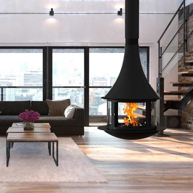 Камин Traforart Lorena Central — это современный подвесной островной камин хай-тек стиля, предназначенный для размещения в центре комнаты. Открытая конструкция без стекла позволяет наслаждаться видом живого огня с любого угла помещения. Камин обладает мощностью 14.4 кВт и высоким КПД 73%, что обеспечивает эффективный обогрев помещений объемом до 300 м³.