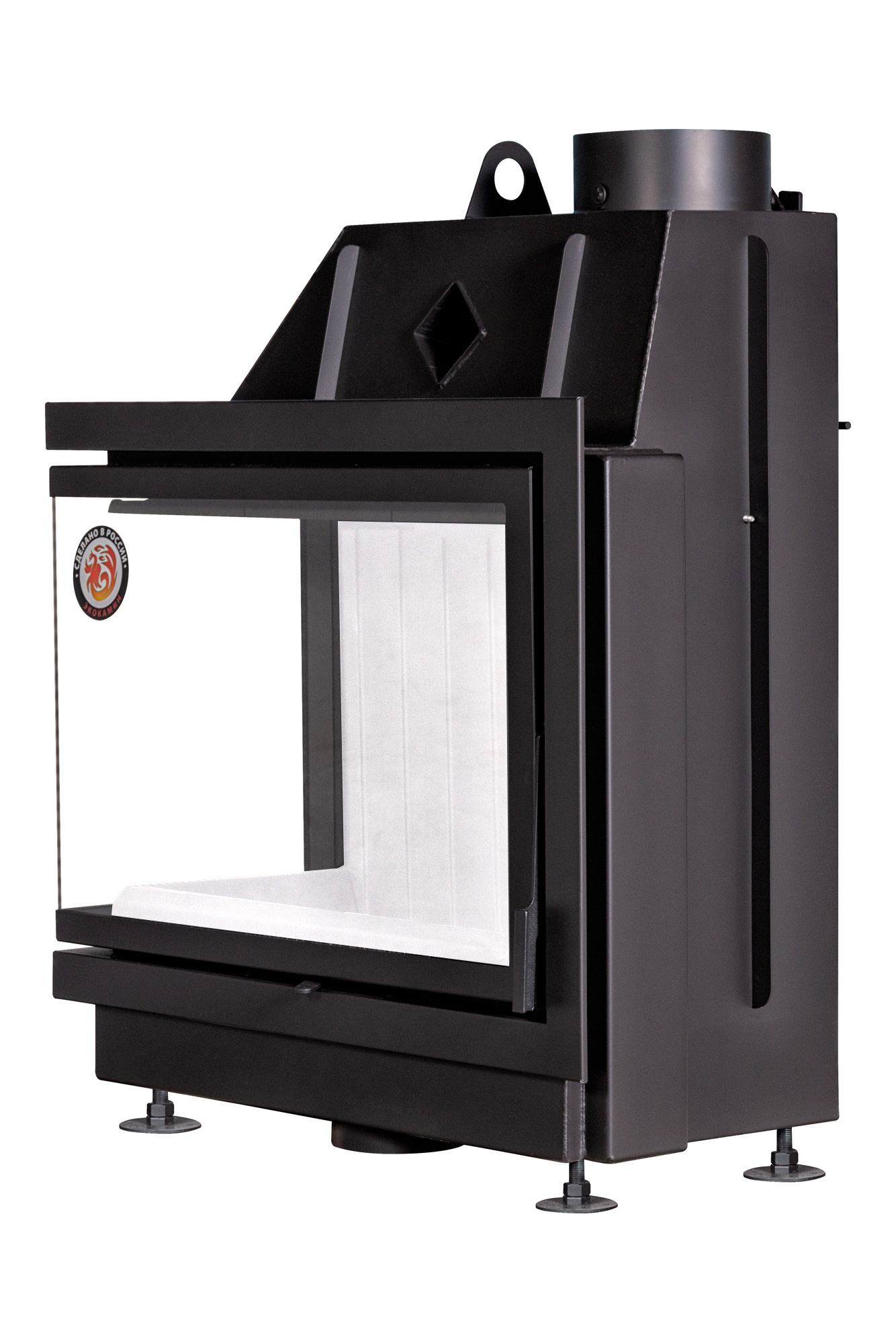 Каминная топка EcoKamin Альфа 800L — это угловая модель с левым расположением Г-образного остекления, предназначенная для создания современного камина в стиле минимализм. Топка изготовлена из стали с внутренней футеровкой из шамота, что обеспечивает долговечность и эффективную теплоотдачу.