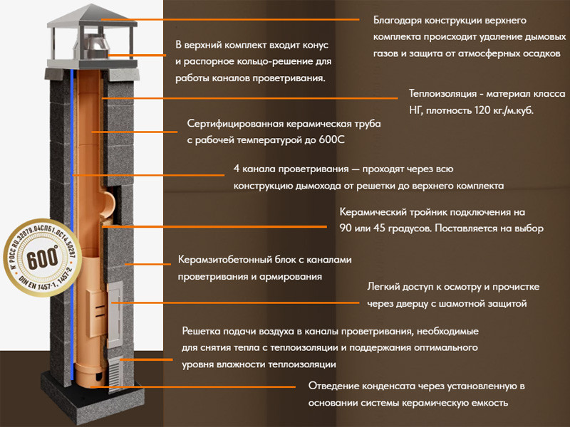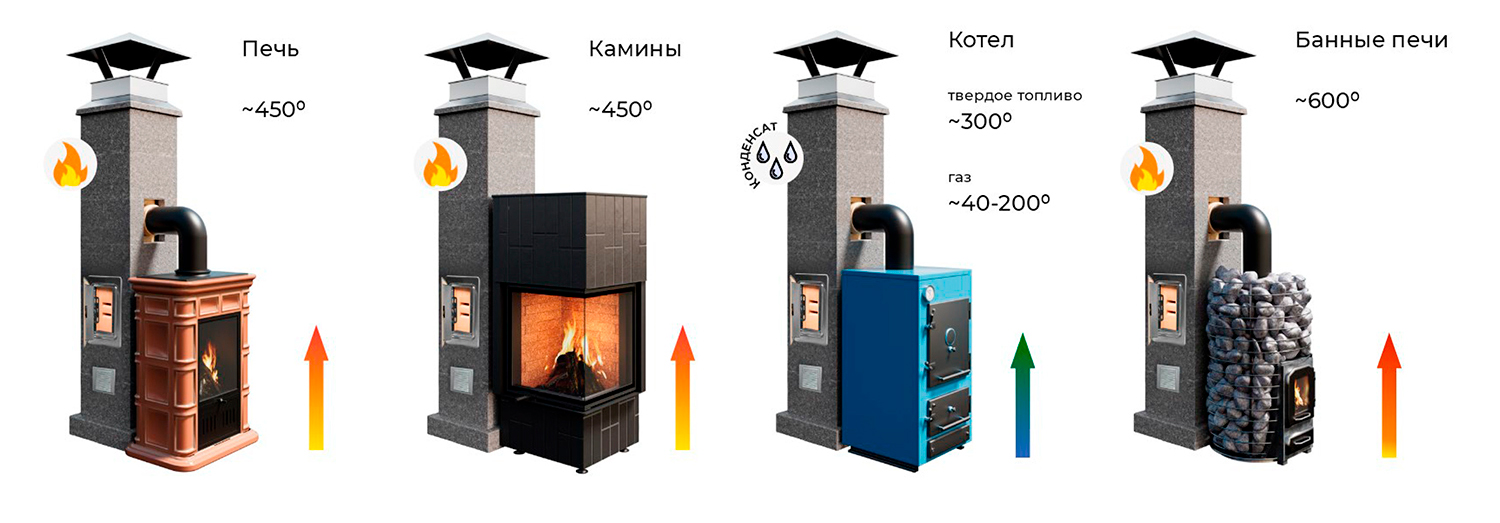 Данный дымоход идеально подойдет для владельцев загородных домов, бань и коттеджей, которые ценят надежность и долговечность. Он совместим с печами мощностью до 30 кВт и каминными топками, обеспечивая эффективный отвод продуктов сгорания при любых погодных условиях.