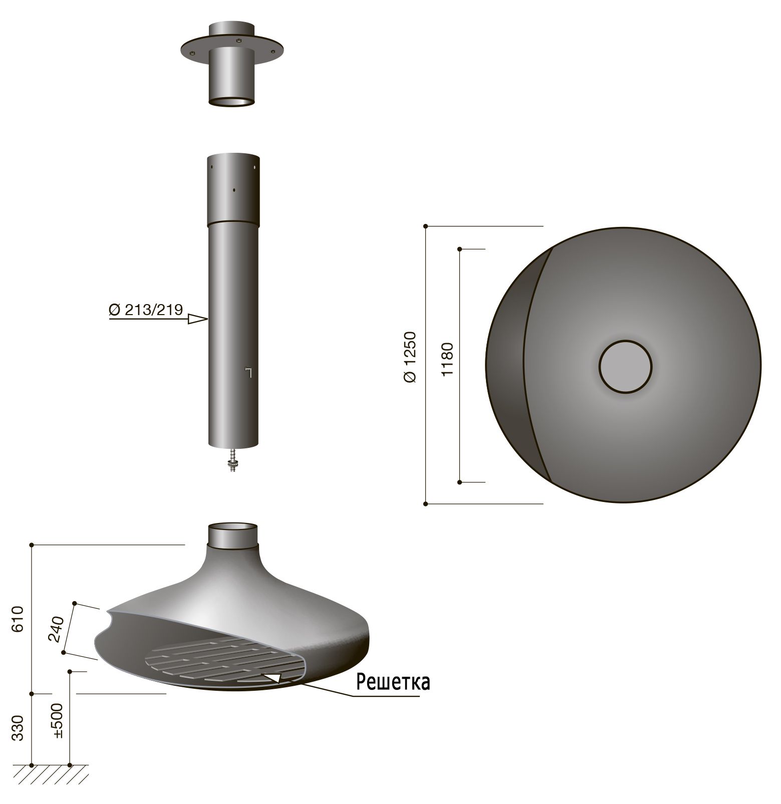 1250ммОбщая высота (мм)