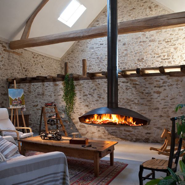 Подвесной камин Antefocus от французского бренда Focus — это эксклюзивная модель в стиле хай-тек, сочетающая оригинальный дизайн и эффективную работу на дровах. Камин может устанавливаться как у стены, так и в центре помещения, предлагая панорамный обзор открытого огня благодаря большой треугольной топочной камере.