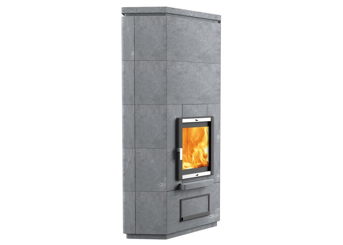 Теплонакопительная печь-камин Talkorus Karhu 15/1550 — это угловая модель, сочетающая эффективный обогрев и эстетичный минималистичный дизайн. Она предназначена для отопления помещений площадью от 30 до 60 квадратных метров и обеспечивает длительную теплоотдачу благодаря массивной облицовке из натурального камня.