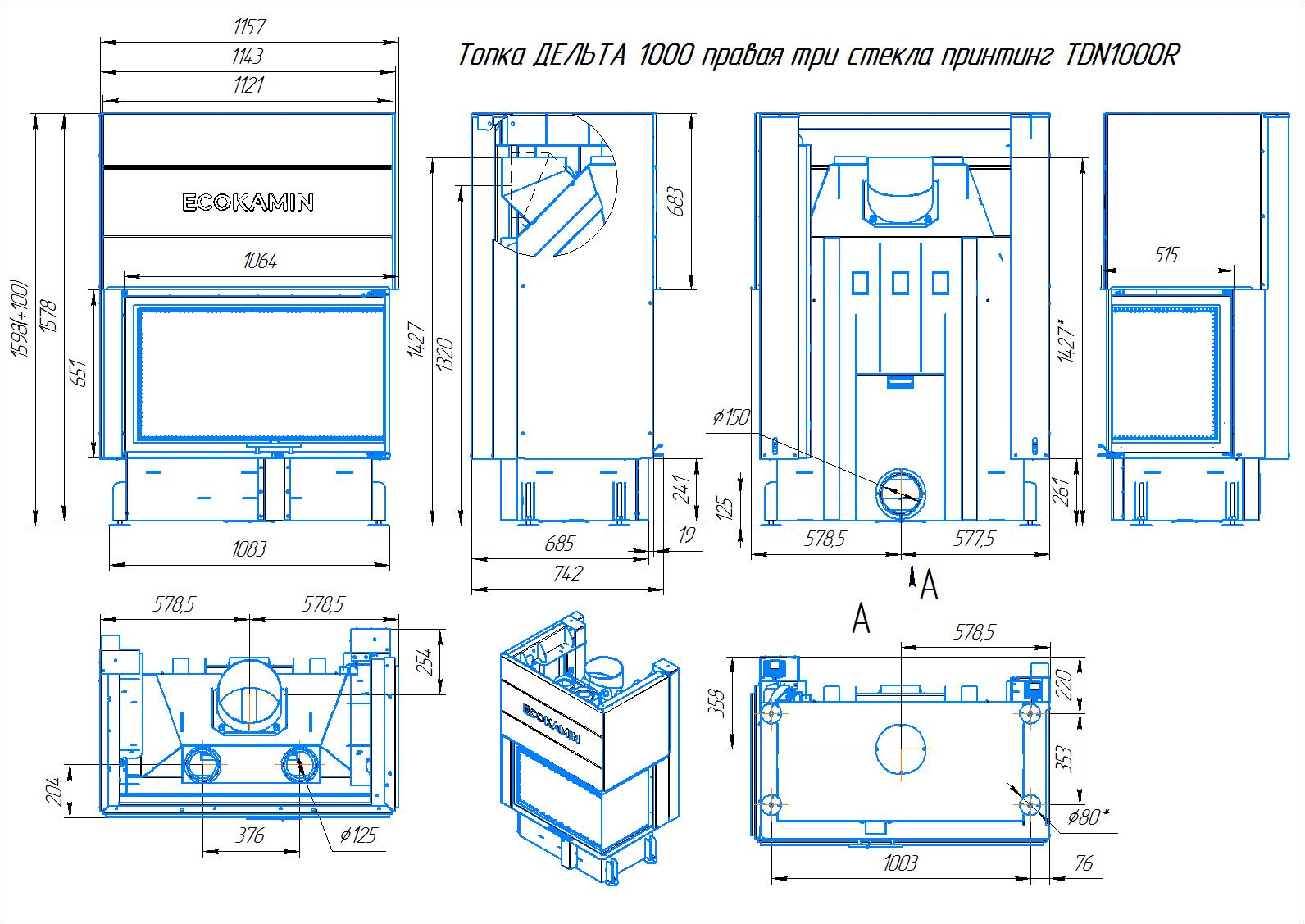 Каминная топка Экокамин Дельта 1000RB — это мощное и эффективное решение для отопления жилых помещений площадью до 180 м². Модель выполнена из комбинации стали и литьевого черного шамота, оснащена двумя термостойкими стеклами угловой формы с принтингом и системой верхнего подключения к дымоходу диаметром 250 мм.