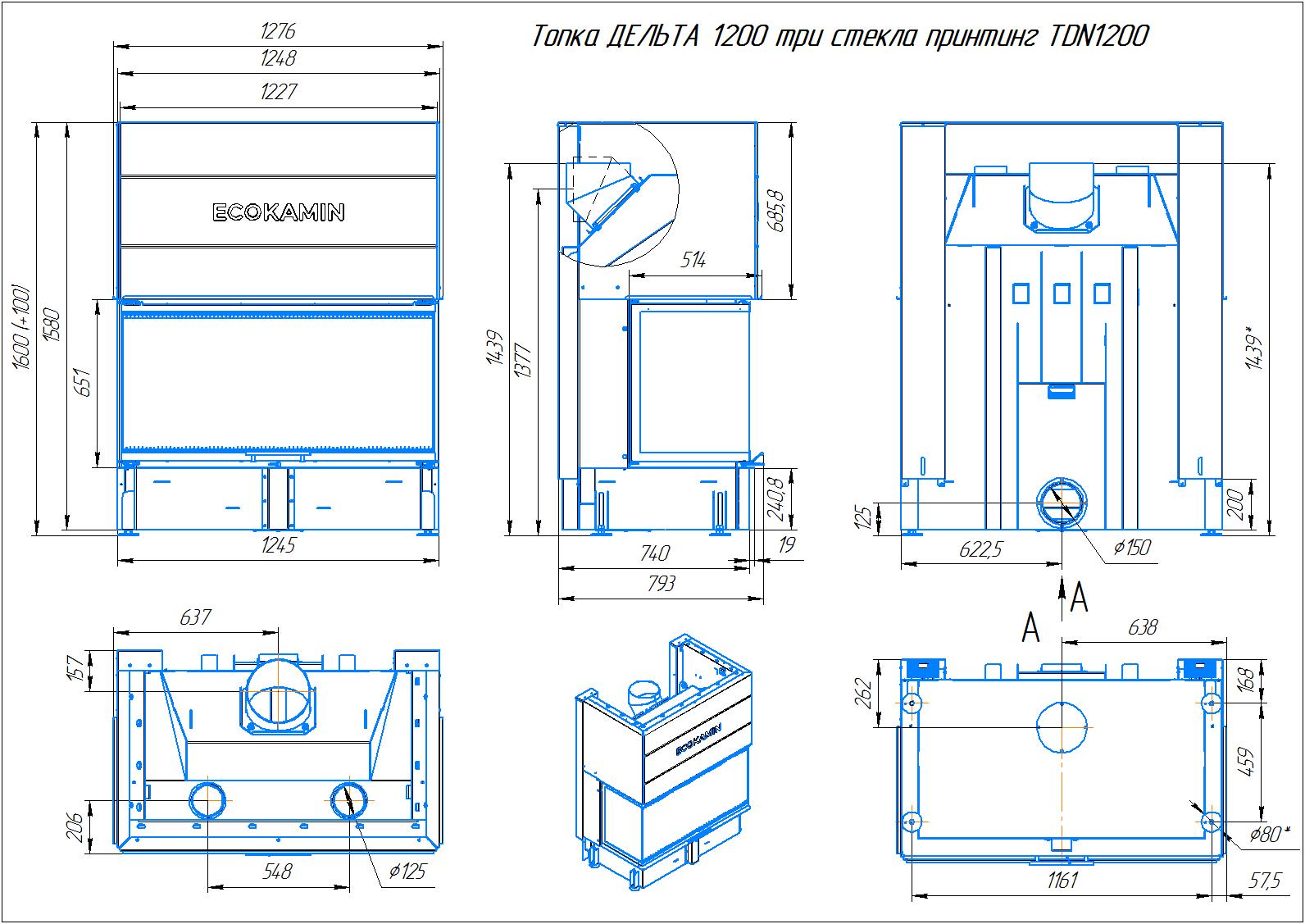 Каминная топка ЭкоКамин Дельта 1200B — это трехсторонняя модель с панорамным остеклением, предназначенная для эффективного отопления помещений площадью от 105 до 190 м². Топка изготовлена из стали с внутренней футеровкой из литьевого черного шамота, что обеспечивает долговечность и высокую теплоотдачу.