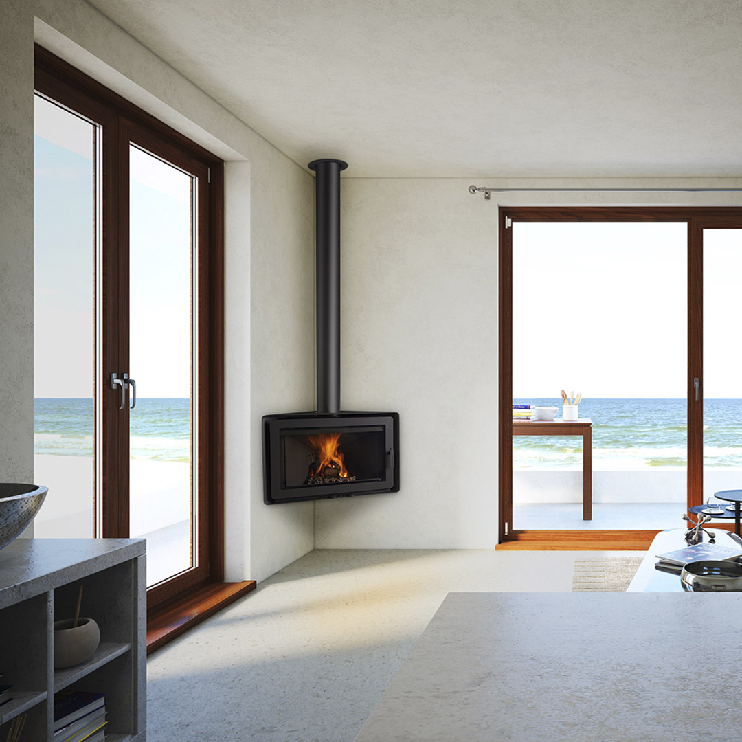 Камин идеально подходит для современных интерьеров в стиле хай-тек, обеспечивая не только эффективный обогрев помещений объемом до 255 м³, но и создавая уютную атмосферу благодаря открытому виду на живое пламя. Модель отличается надежностью и соответствует европейским стандартам качества EN 13240.