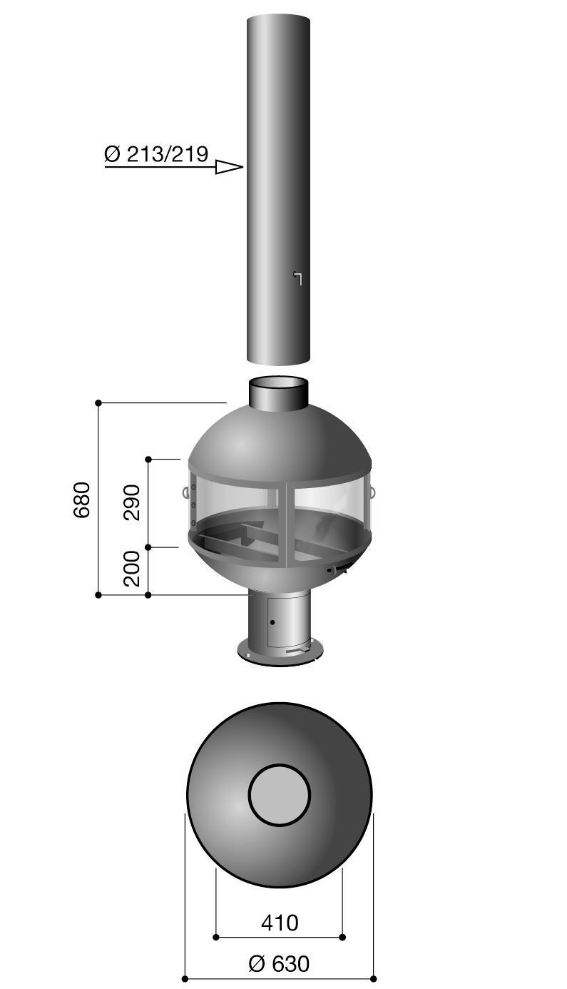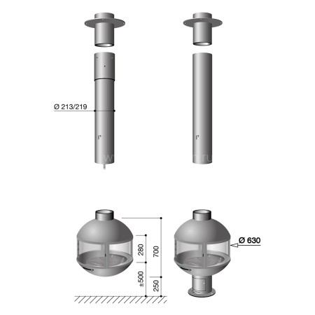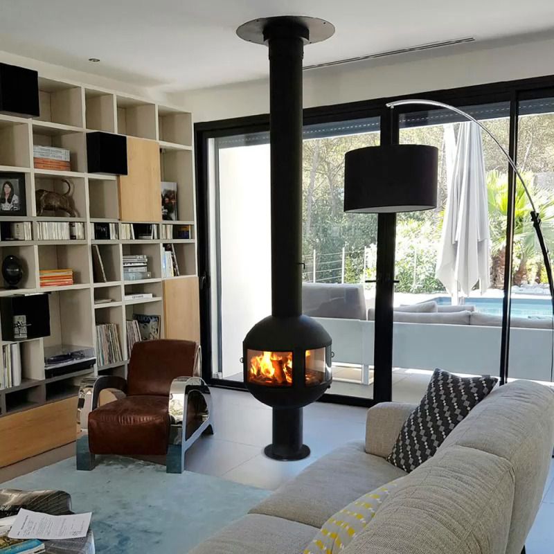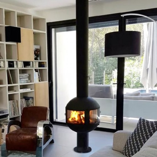 Островной дровяной камин Focus Agorafocus 630 — это современное решение в стиле хай-тек для создания уютной атмосферы в центре помещения. Камин имеет цилиндрическую форму с панорамным четырехсторонним остеклением, две стеклянные панели из которых открываются, обеспечивая широкий обзор на живое пламя. Модель может устанавливаться как на специальное основание, так и в подвесном варианте, что позволяет гибко вписать её в интерьер.