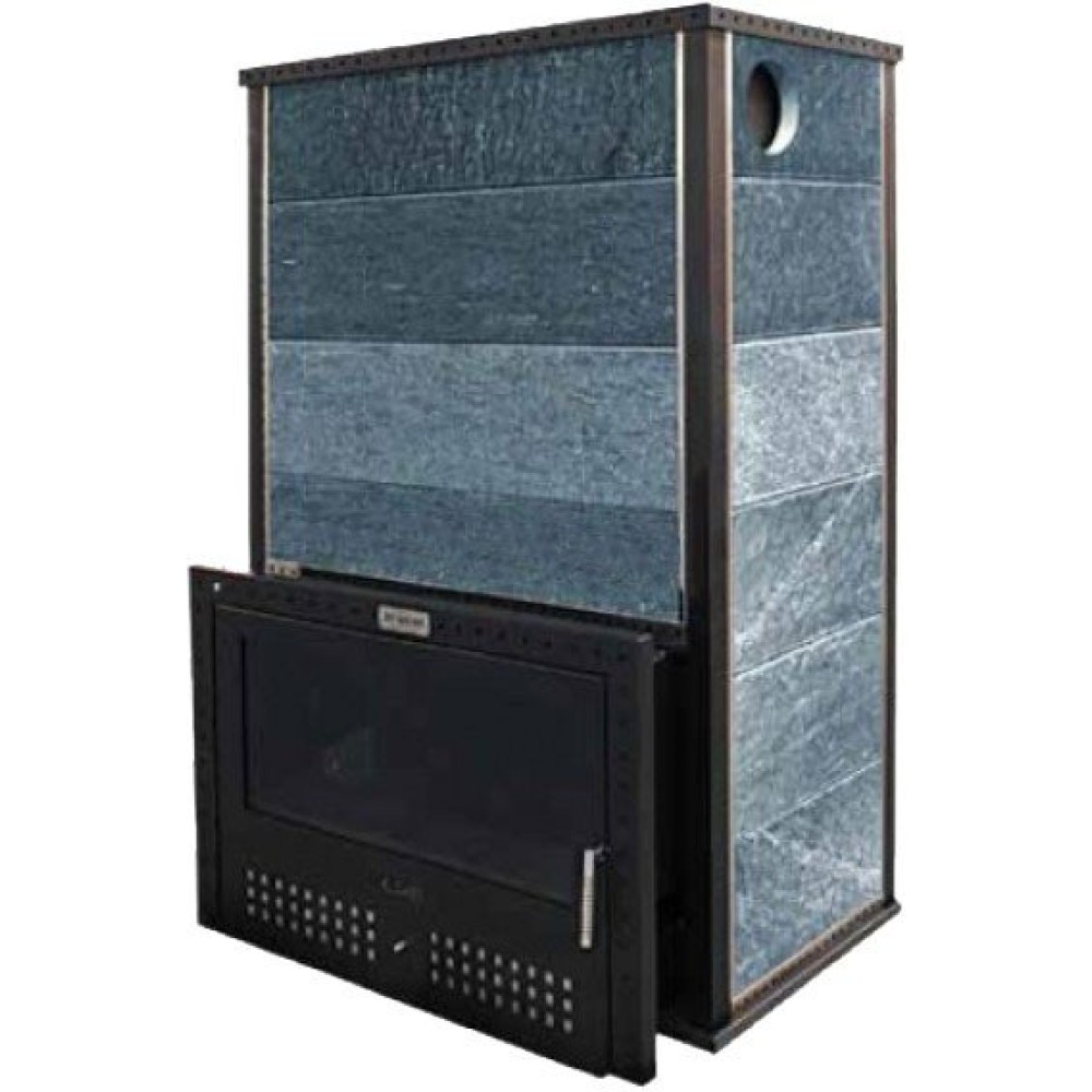 Дровяная печь Klover KLV RT 100-RVs — это профессиональное оборудование для русской бани, предназначенное для эффективного отопления парных объемом от 50 до 100 кубических метров. Печь отличается мощностью 80 кВт и оснащена облицовкой из натурального серпентинита толщиной 40 мм, что обеспечивает не только эстетичный внешний вид, но и отличную теплоемкость.