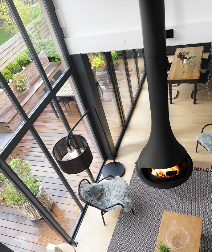 Данная модель идеально подойдет для современных интерьеров, где камин становится не только источником тепла, но и центральным элементом дизайна. Благодаря подвесной конструкции и отсутствию остекления, камин создает эффект парящего в воздухе очага.