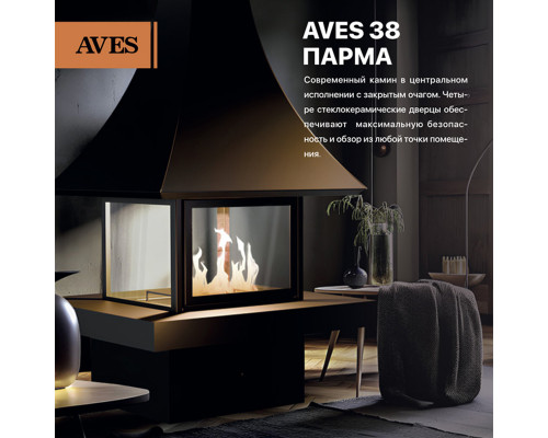 Камин Aves 38 Парма представляет собой современное островное решение для создания уютной атмосферы в центре помещения. Эта модель выполнена в стиле хай-тек из высококачественной стали и стекла, обеспечивая панорамный обзор пламени со всех сторон.