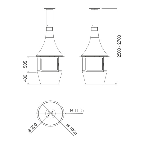 Камин Traforart Lorena Central — это современный подвесной островной камин хай-тек стиля, предназначенный для размещения в центре комнаты. Открытая конструкция без стекла позволяет наслаждаться видом живого огня с любого угла помещения. Камин обладает мощностью 14.4 кВт и высоким КПД 73%, что обеспечивает эффективный обогрев помещений объемом до 300 м³.