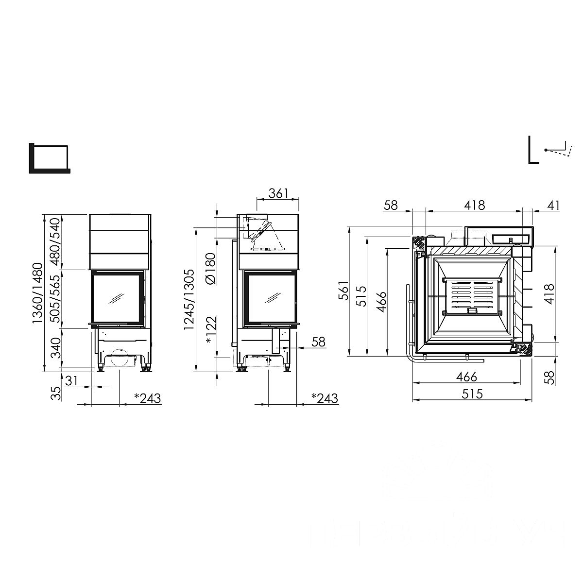 Г-образноеТип открывания