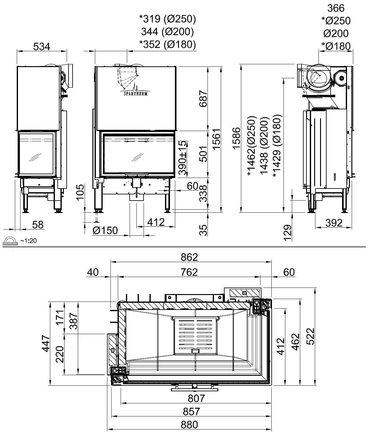 Каминная топка Spartherm Linear 4S Varia 2R80h представляет собой современное немецкое оборудование премиум-класса для создания элегантного углового камина. Модель отличается высоким КПД 80% и мощностью 10,4 кВт, что позволяет эффективно обогревать помещения до 100 м².