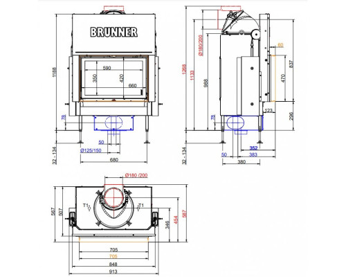 Немецкая каминная топка Brunner BKH Flat 42-66 ST представляет собой современное отопительное решение с подъемной дверцей и прямым стеклом. Эта закрытая топка обеспечивает эффективный и безопасный обогрев помещений до 250 м³ благодаря мощности 9 кВт и высокому КПД 85%.