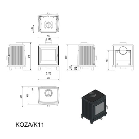 Печь-камин Kratki Koza K11 — это чугунная отопительная печь пристенного расположения, предназначенная для эффективного обогрева помещений площадью до 60 м². Модель сочетает в себе классический дизайн и современные технологии отопления.