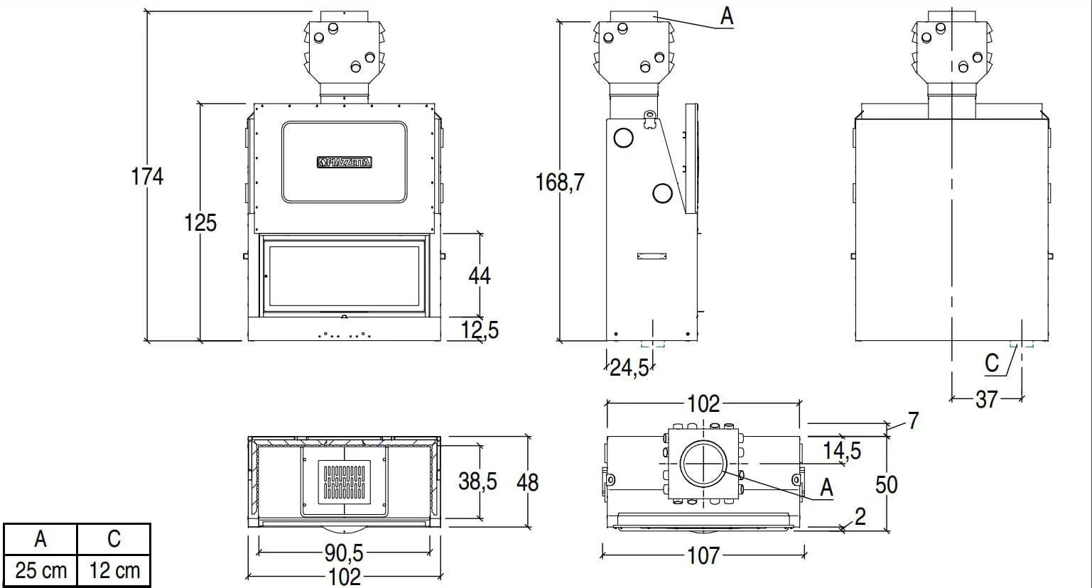 Каминная топка Piazzetta MA 263 SL — это закрытая дровяная топка итальянского производства, предназначенная для эффективного отопления жилых помещений. Модель отличается современным дизайном, высокой мощностью и продуманной системой горения.